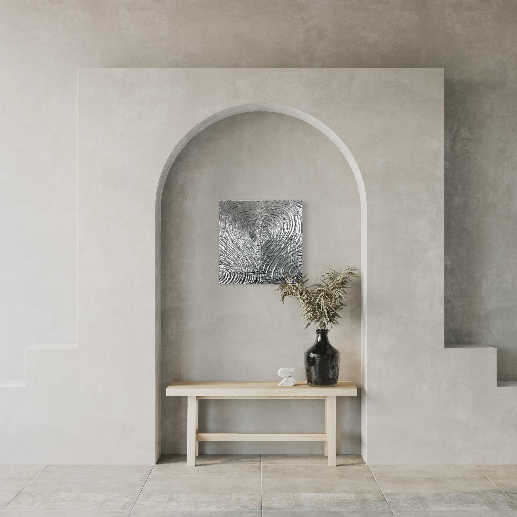 Médiums mixtes: Mortier de structure et acrylique.